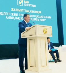 Кездесудің негізгі баяндамасын Қазақстан Республикасы Президентінің кеңесшісі Мәлік Нұржанұлы Отарбаев жасады. Ол алдағы республикалық референдумның тарихи маңызына тоқталып, конституциялық өзгерістердің басты бағыттарын түсіндірді. Кеңесші ел дамуының жаңа кезеңінде әр азаматтың белсенділігі мен жауапкершілігі айрықша рөл атқаратынын айтты. Сонымен қатар саяси жаңғыру үдерісі қоғамдағы әділдік пен ашықтық қағидаттарына негізделуі тиіс екенін жеткізді.
