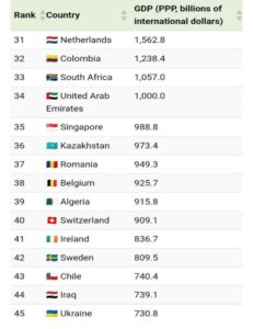 Казахстан занял 36-е место среди крупнейших экономик мира по валовому внутреннему продукту по паритету покупательной способности (ВВП по ППС).