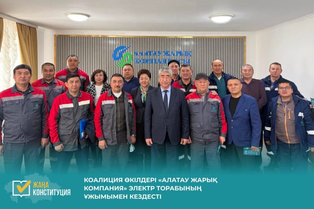 «Әділетті және Прогрессивті Қазақстанның Халықтық Конституциясы үшін!» Жалпыұлттық коалициясының мүшелері Ұзынағаш ауылындағы «Алатау жарық компаниясы» ‘электр торабынының еңбек ұжымымен кездесіп, 2026 жылғы 15 наурызда өтетін республикалық референдумға шығарылған жаңа Конституция жобасын талқылады.