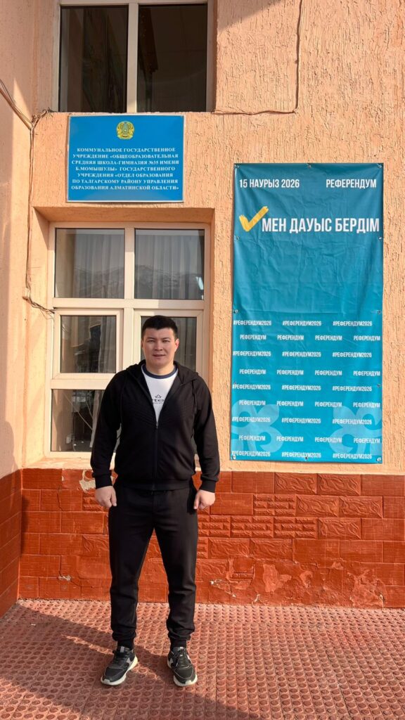 В 09:00 на избирательном участке №854 в селе Белбулак чемпион мира, спортсмен Жасулан Кыдырбаев отдал свой голос. Он также проявил активность среди впервые голосующих. Жасулан Кыдырбаев родился в селе Сарыжаз Райымбекского района Алматинской области, детство провел в городе Талгар. Он является бронзовым призером мировых соревнований и гордостью страны.