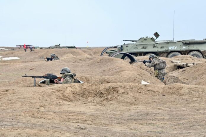 Әскери қызметшілер шартты қарсыласқа атыс соққысын ұйымдастырып, әр түрлі штаттық қару-жарақтан оқ ату жаттығуларын пысықтады.
